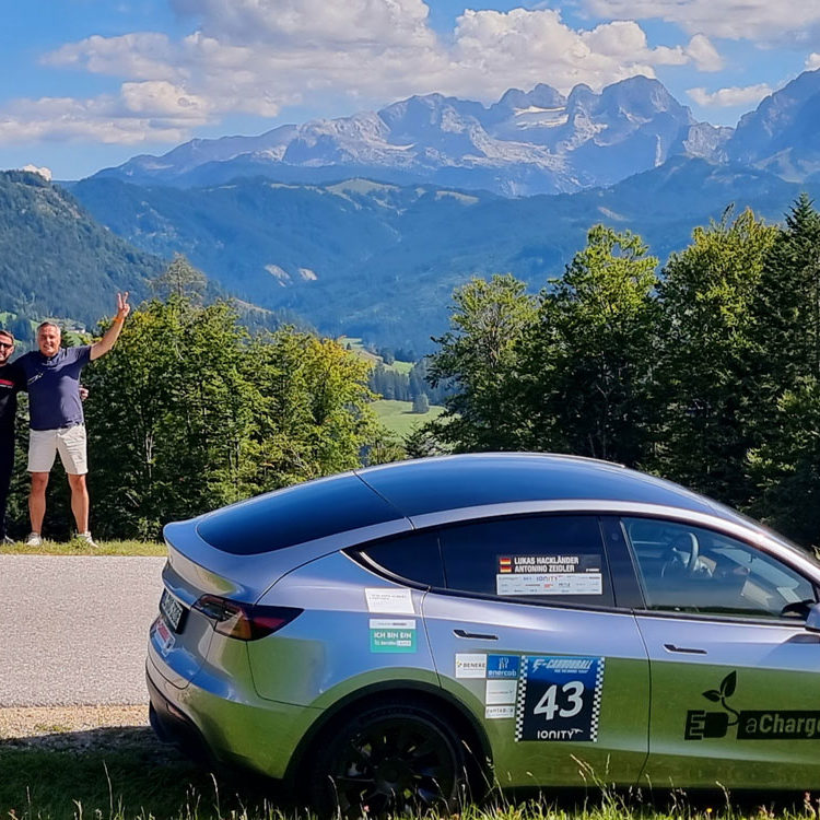 Als Goldsponsor durften wir auch in diesem Jahr wieder ein Fahrerteam aufstellen und mit einem Wahlfahrzeug am E-Cannonball 2023 teilnehmen. Wir haben uns für ein Tesla Model Y Long Range aus der eigenen Fahrzeugflotte entschieden und haben mit diesem in der Leistungsklasse 1 an der Elektroauto-Rally teilgenommen. Da es in diesem Jahr durch die Berge ging, war es wichtiger denn je sein Fahrzeug genau zu kennen. Da traf es sich natürlich gut, dass mein Co-Pilot Antonino Zeidler (Youtube-Kanal Strombock) ebenfalls im Alltag ein Tesla Model Y fährt. Wir beide bringen auf dem Fahrzeug viel Langstreckenerfahrung mit, haben beide Erfahrungen auf Rennstrecken und bewegen das Model Y täglich im bergischen Land – wir bringen also beste Voraussetzungen mit!